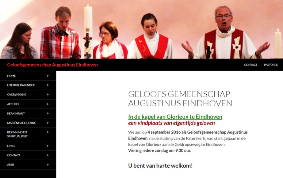 De Geloofsgemeenschap Augustinus Eindhoven startte op 4 september 2016 na de sluiting van de Paterskerk. De gemeenschap kerkt in de kapel van Glorieux aan de Geldropseweg te Eindhoven. website Augustinus-Eindhoven.nl Vieringen iedere zondag om 9.30 uur. |
